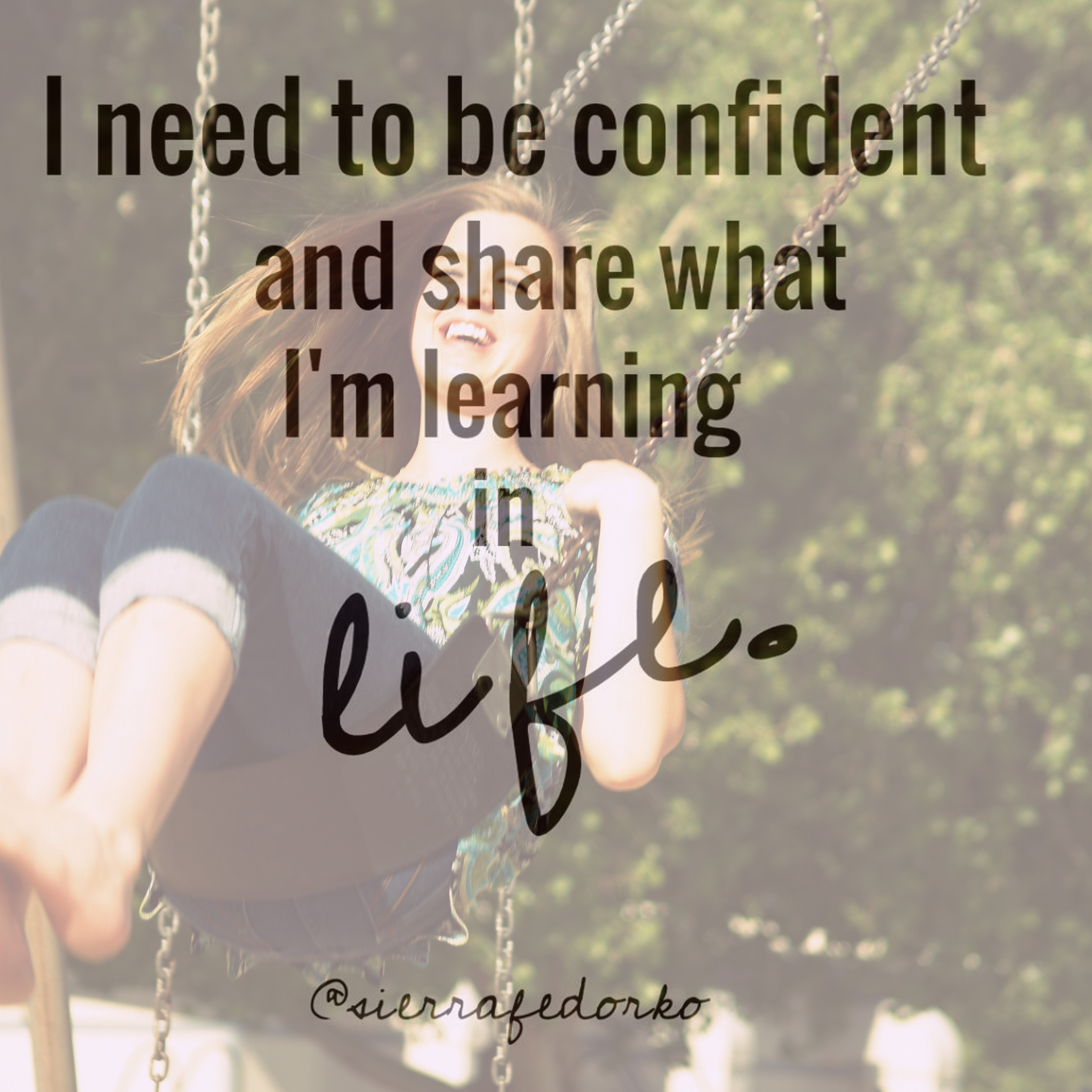 I also need to be confident to share what I am learning in life even though it may be a “no, duh” moment for someone older and wiser than myself. I have to be humble about the learning curves and be willing to open them up to others.