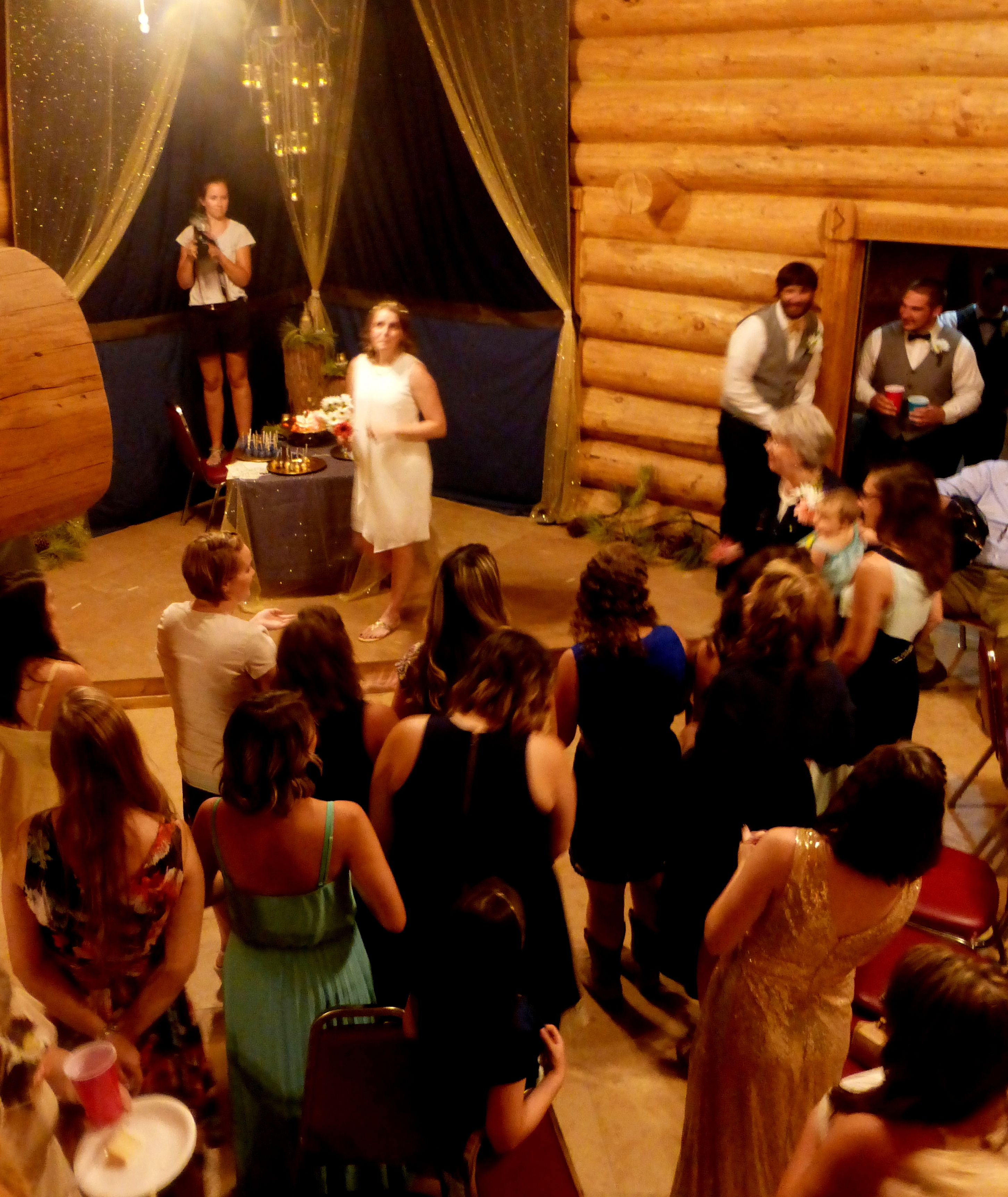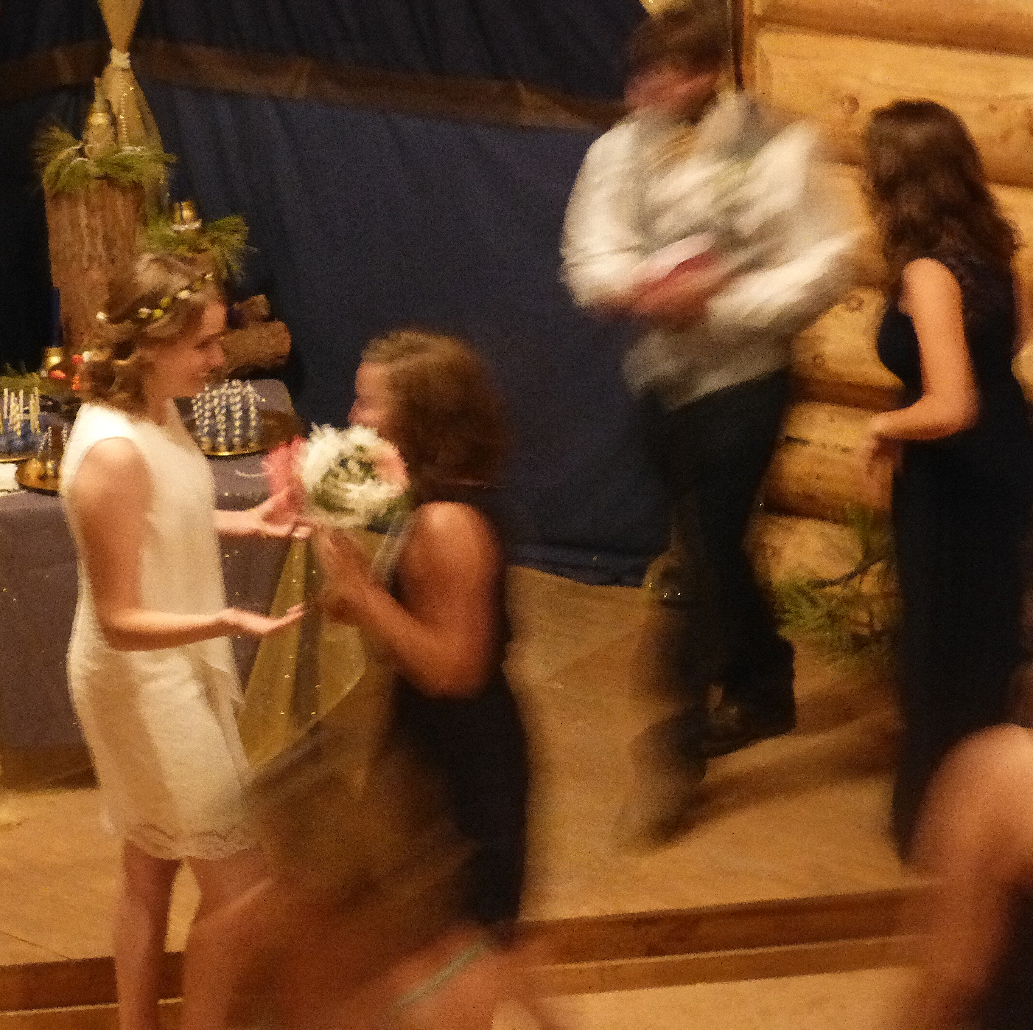 I hugged my sister close, and I hugged my new brother overwhelmed by gratitude. I watched as she tossed her bouquet into the crowd of girls. I know this photo is fuzzy, but I love this picture, because Hannah is front and center while she takes in everything around her!