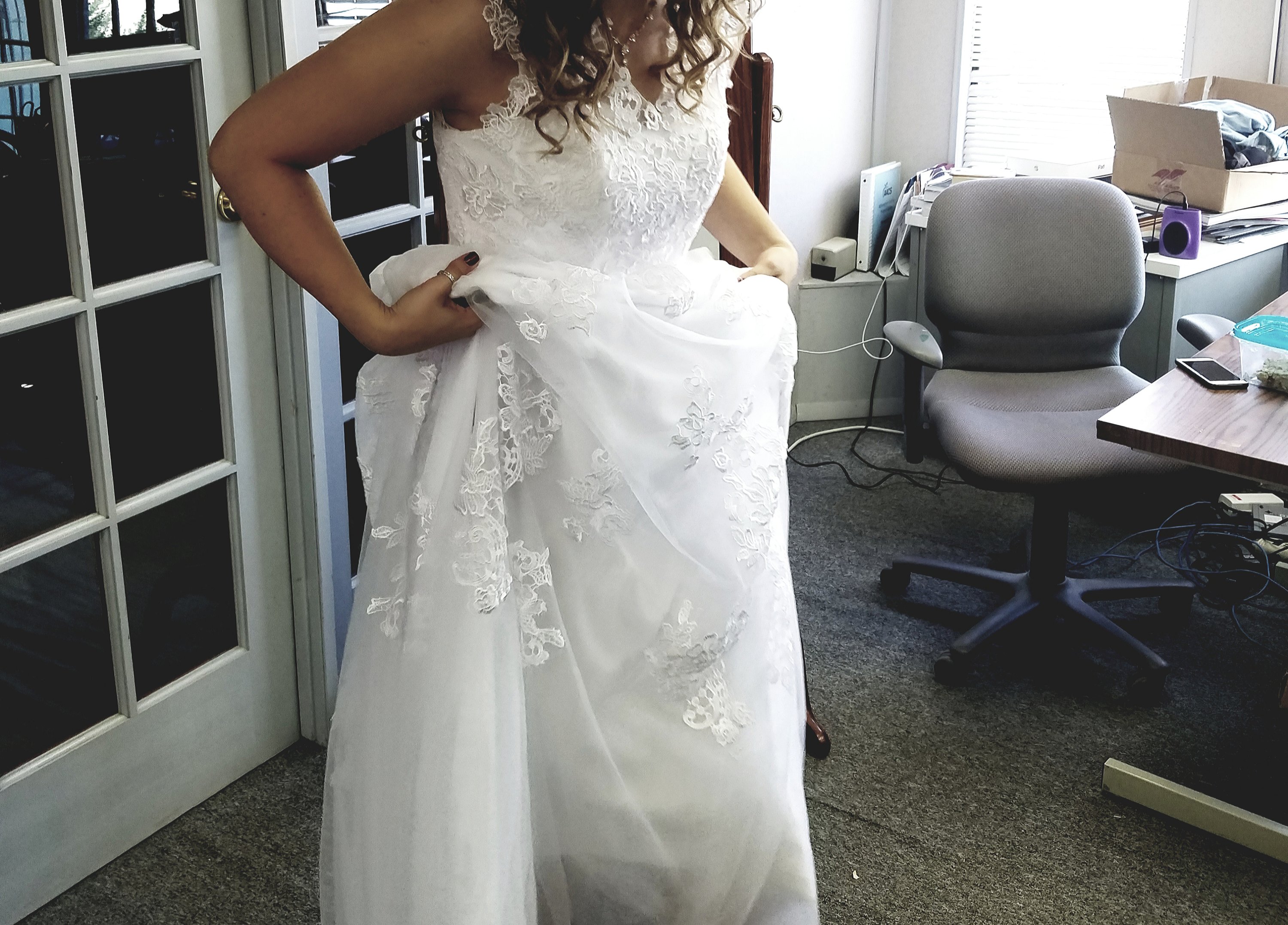 On Sunday night, Bodie finally left the living room so you could show me your wedding dress hidden underneath the blanket. I’ve been gushing about your wedding dress for months and seeing your dress (in person!) was made even better by the fact that we were in Cheyenne’s home. These are the kind of things that dreams are made of! All four of us girls, in the midst of a crazy night, were together with your wedding dress sprawled over the couch. And it was the perfect dress for you in every way.