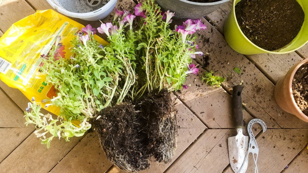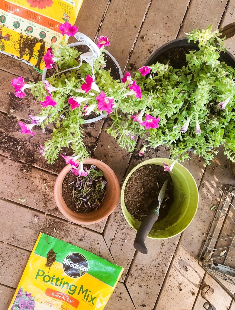 I noticed one of my flower bunches had outgrown its pot. The roots were reaching out of the drainage holes. So I did what I’ve never done before. I became a plant surgeon. Instead of buying a larger pot, I used what I had. I broke the soil and gently yet firmly replanted both into separate pots.