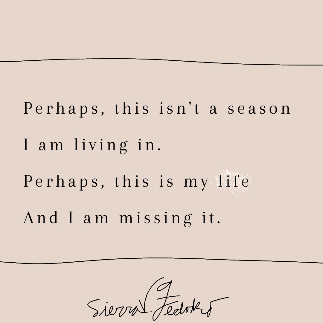 A few years ago I found myself in an excruciating season, but somewhere along the way, I had such a freeing thought. We spend too much time waiting for things to happen or waiting for things to be over. We wait when we don’t have to, so we end up missing out on everything.