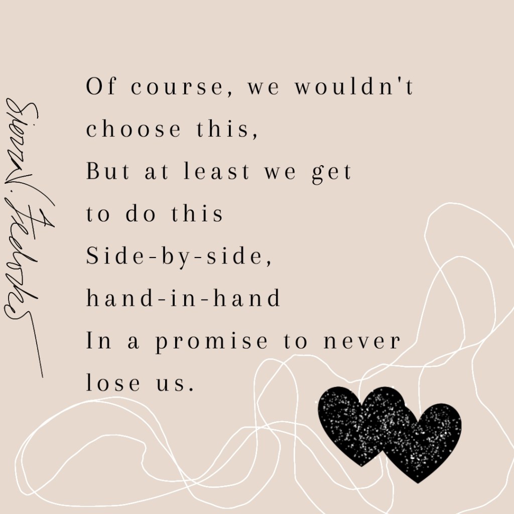 We wouldn’t choose half the things we experience in life. But the bright side is being side-by-side. And so when all the better and best things come around (which they do, and we often don’t control those either!), we’re still in the promise. Here’s a poem for the married folks. You live the bright side every day you get to be side-by-side.