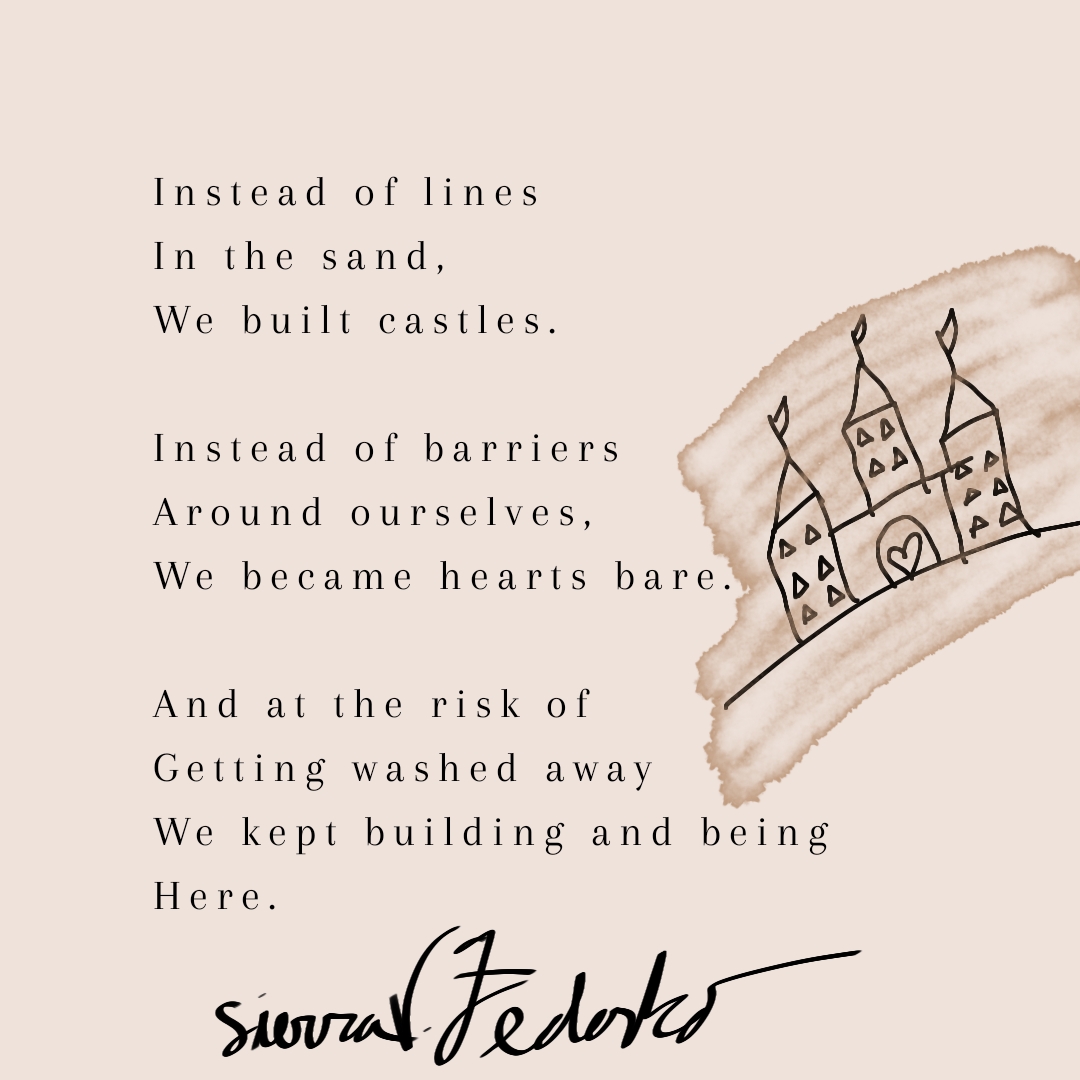 And if we get washed away, at least we will have the remnants of castles to leave behind. . .instead of lines that leave us all behind.