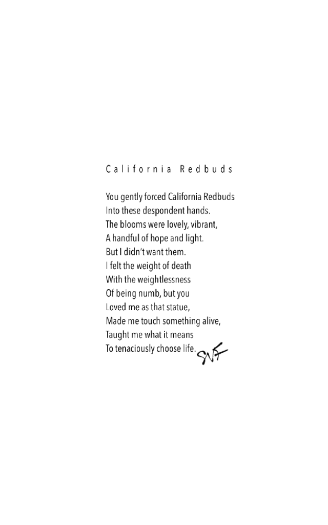 After Ben handed me those redbuds, my heart soon collapsed on a friend’s couch (another poem in HGaE) and I just expressed my pain aloud. From the moment of redbuds to my friend’s couch (about 5-6 hours in time) I could breathe outside the tunnel again. And that April night was an incredible turning point for me.
