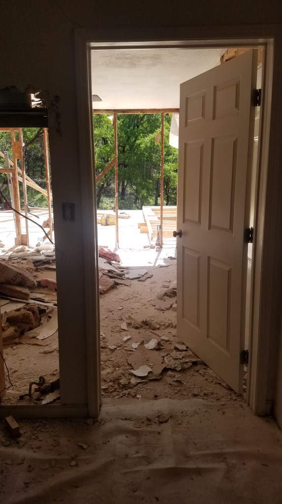 Our small blue house getting renovated which essentially doubled the house (maybe more, because we have an amazing loft now too!!!) All except a corner of my kitchen was gutted!