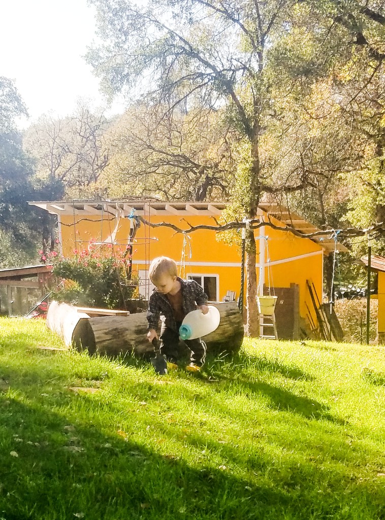In that time we lived in a tired trailer down the way from our house. In the peak of gardening season and springtime, we had home things displaced everywhere. . .on the porch, in our bright yellow shed, in the garden itself. Not to mention us! We were “displaced” too. It was wild!