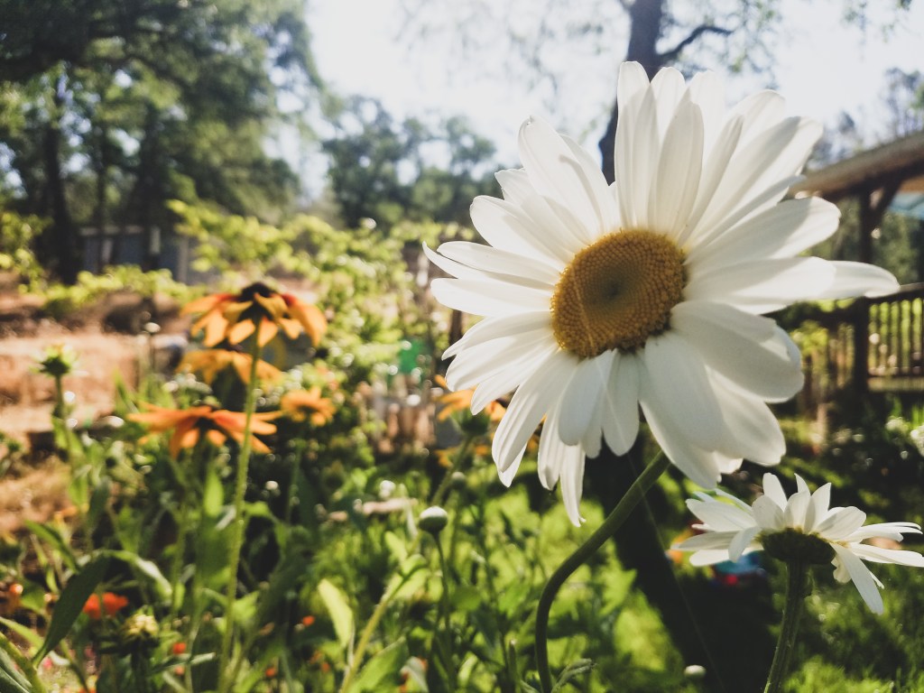 Since January, Heid’s flowerbed has had some kind of orange or yellow daisy blooming. BLOOMING. And that has only somersaulted into a spring show I couldn’t have put together on my own!