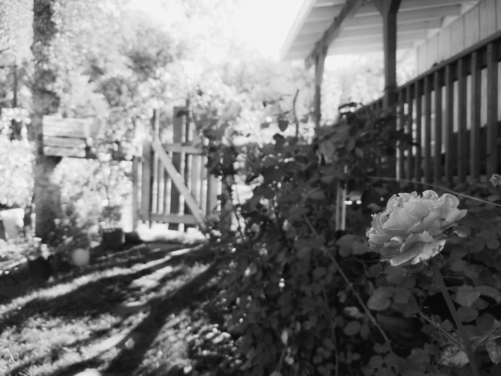 Red roses blooming and purple mums coming, but fading fast daisy gets uprooted and hydrangea had its lovely first season but dies hard and I wonder if that’s the end of that and of the daisy too…