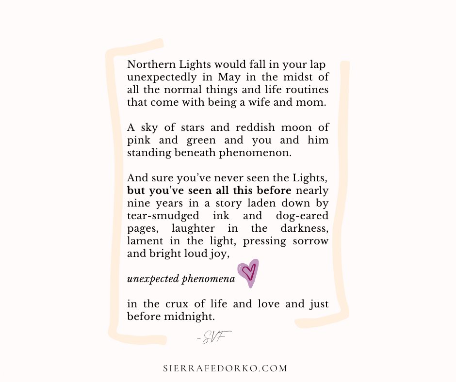 Around this time last year Ben and I were unexpectedly seeing the Northern Lights in Idaho. I was 13 weeks pregnant and feeling so sick. I kept going back to bed and Ben kept getting me out of bed to go see the sky! (It was worth it And I managed to *not* throw up.)