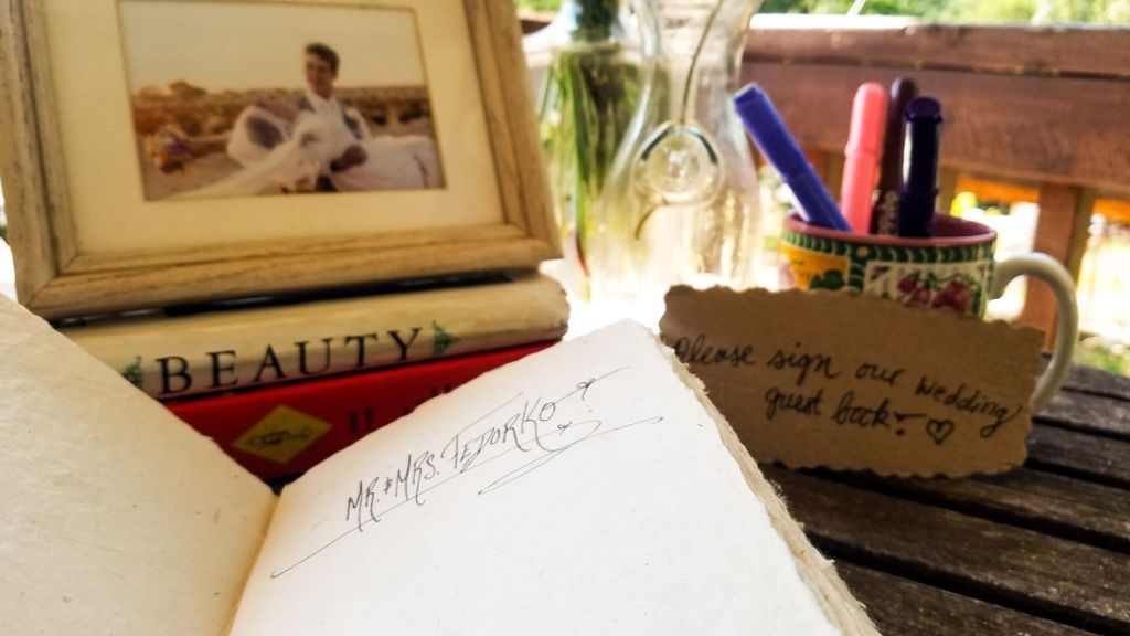 The purple party banner stretched long across the garden and our wedding guest book got dusted off and had another chance to shine as our dear friends who do everyday life with us–trenches, mountaintops and all–signed the pages.