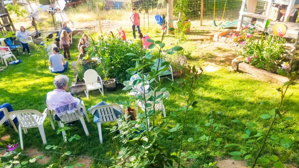 Children played in the garden, in the sandbox, with the goats, on the zipline. Church family and neighbors gathered in the garden, on the porch– here & there–and chatted life…the hard things about it too.
