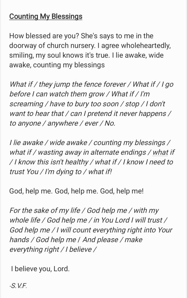 I hope you feel seen by this poem. May it provide words for the very real fear we feel as parents, but may it also bolster your soul in the true Peace we can know when we pray to the Lord and believe Him.