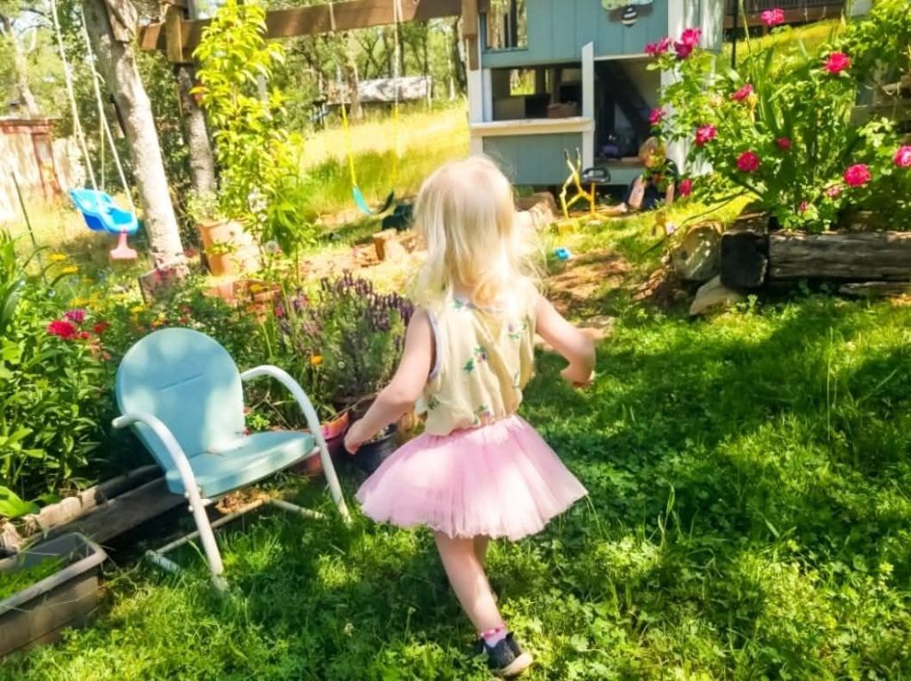 We’d hang a baby swing and soon we would need a big kid swing. I’d choose a rose for my daughter and she’d lie on her colorful quilt until she danced by the rose bush that belongs to her.